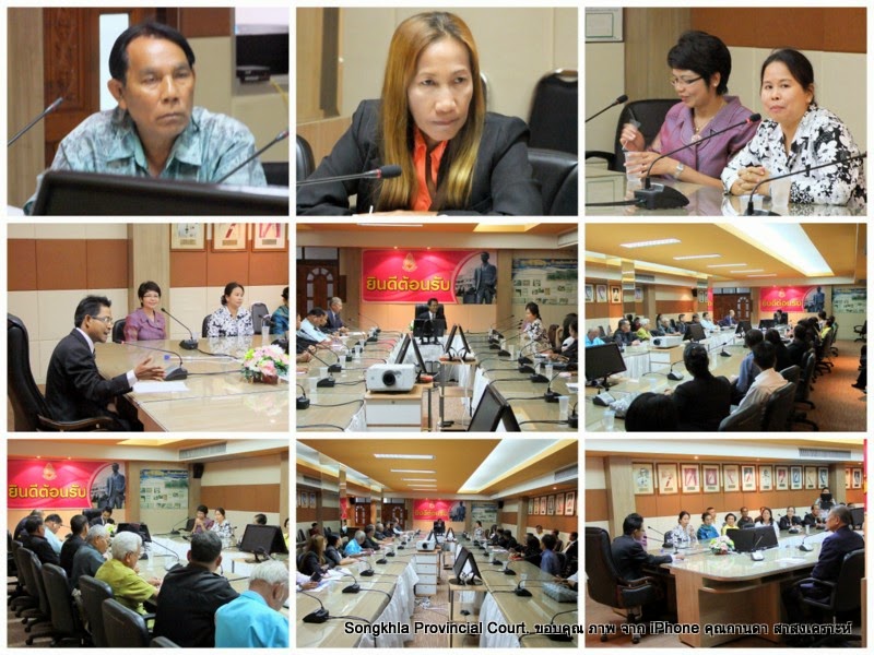 เมื่อวันที่ ๑๙ พฤษภาคม ๒๕๕๗ ผู้พิพากษาหัวหน้าศาลจังหวัดสงขลา ผู้อำนวยการสำนักอำนวยการประจำศาลจังหวัดสงขลาพร้อมด้วยเจ้าหน้าที่ศาลจังหวัดสงขลา ให้การต้อนรับ นางนุสรา วงษ์สุวรรณ ผู้อำนวยการ สำนักงานคุมประพฤติจังหวัดสงขลา ซึ่งนำคณะกรรมการบริหารอาสาสมัครคุมประพฤติประจำจังหวัดสงขลา เข้าเยี่ยมชม และแนะนำตัวต่อผู้พิพากษาหัวหน้าศาลในโอกาส เริ่มวาระแรกในการปฏิบัติหน้าที่ คณะกรรมการบริหาร อาสาสมัครคุมประพฤติ ณ ห้องประชุมใหญ่ ศาลจังหวัดสงขลา.../.